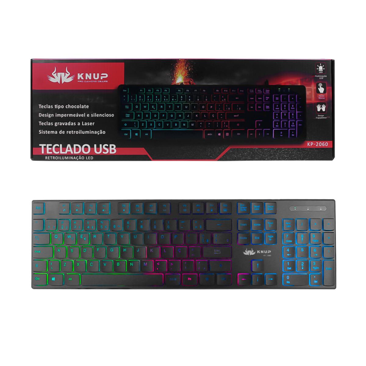 Teclado Gamer USB RGB Knup Silencioso Ergonômico - KP-2060