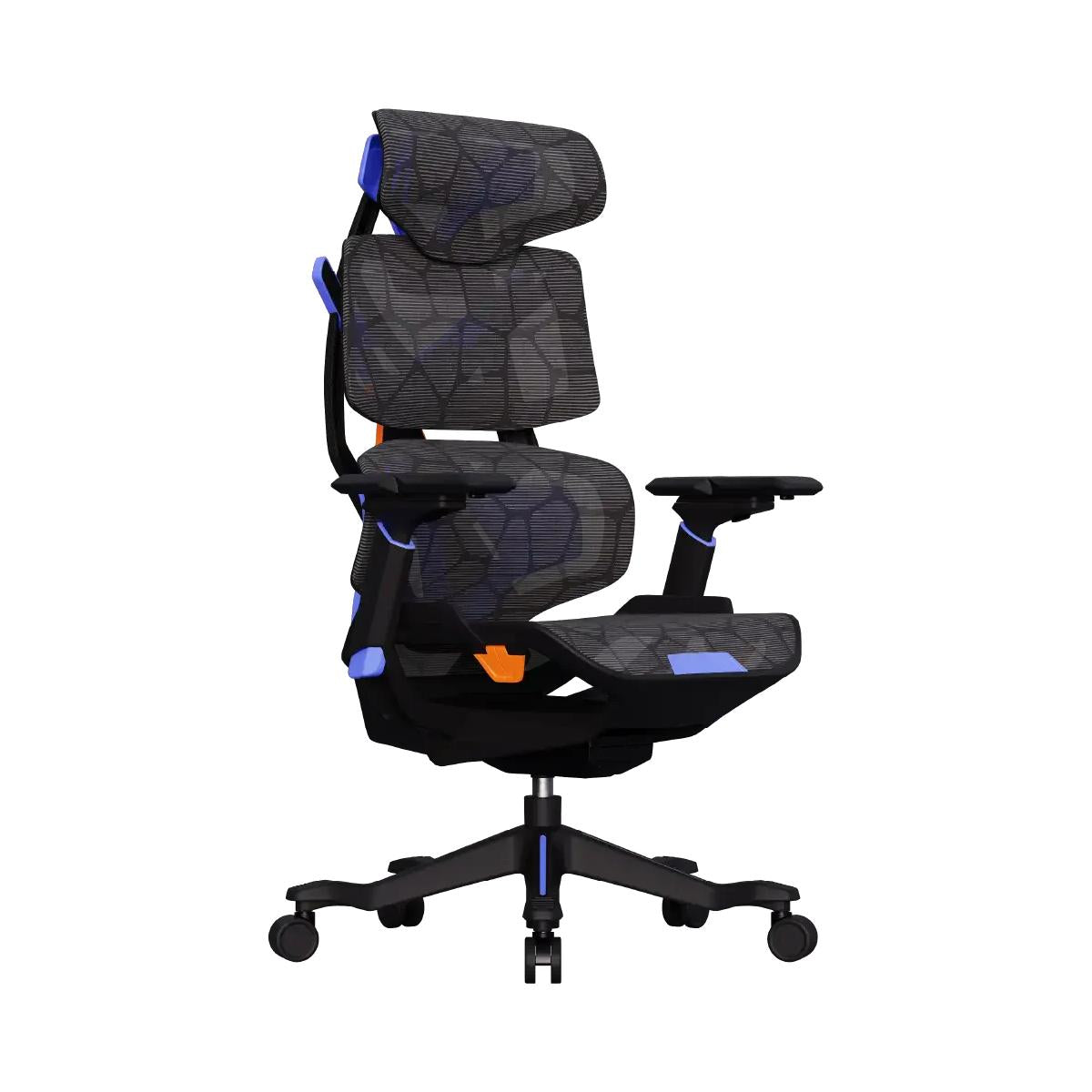 O design ergonômico mantém a postura correta e reduz a fadiga ao longo do tempo. O encosto reclinável com trava em 4 posições e o apoio de cabeça 2D com ajuste de altura e ângulo permitem personalização total, adaptando a cadeira ao seu corpo e ao seu estilo de uso, seja para jogar, estudar ou relaxar.