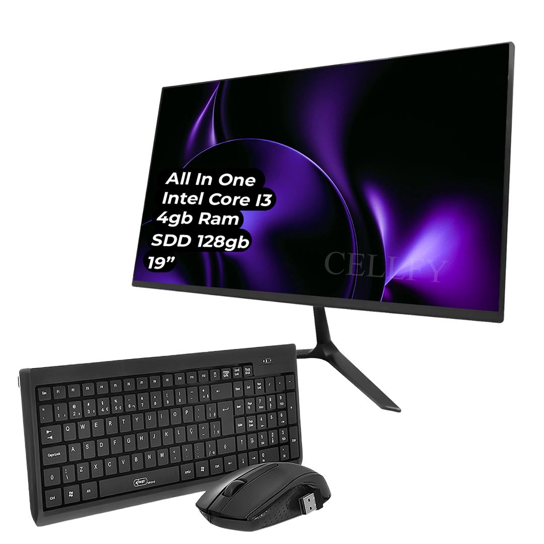 Kit Computador All In One Knup I3 Tela 19" 128GB Mouse Teclado Sem Fio - KIT-G-AI01