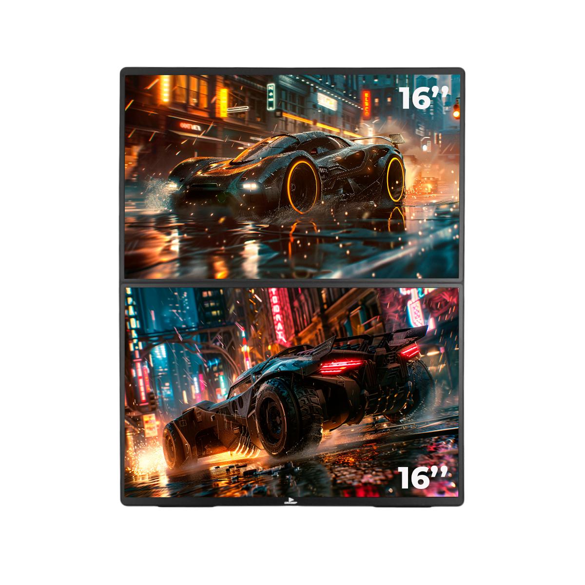 Aumente sua produtividade em qualquer lugar com o Monitor Duplo Portátil 16 Polegadas!